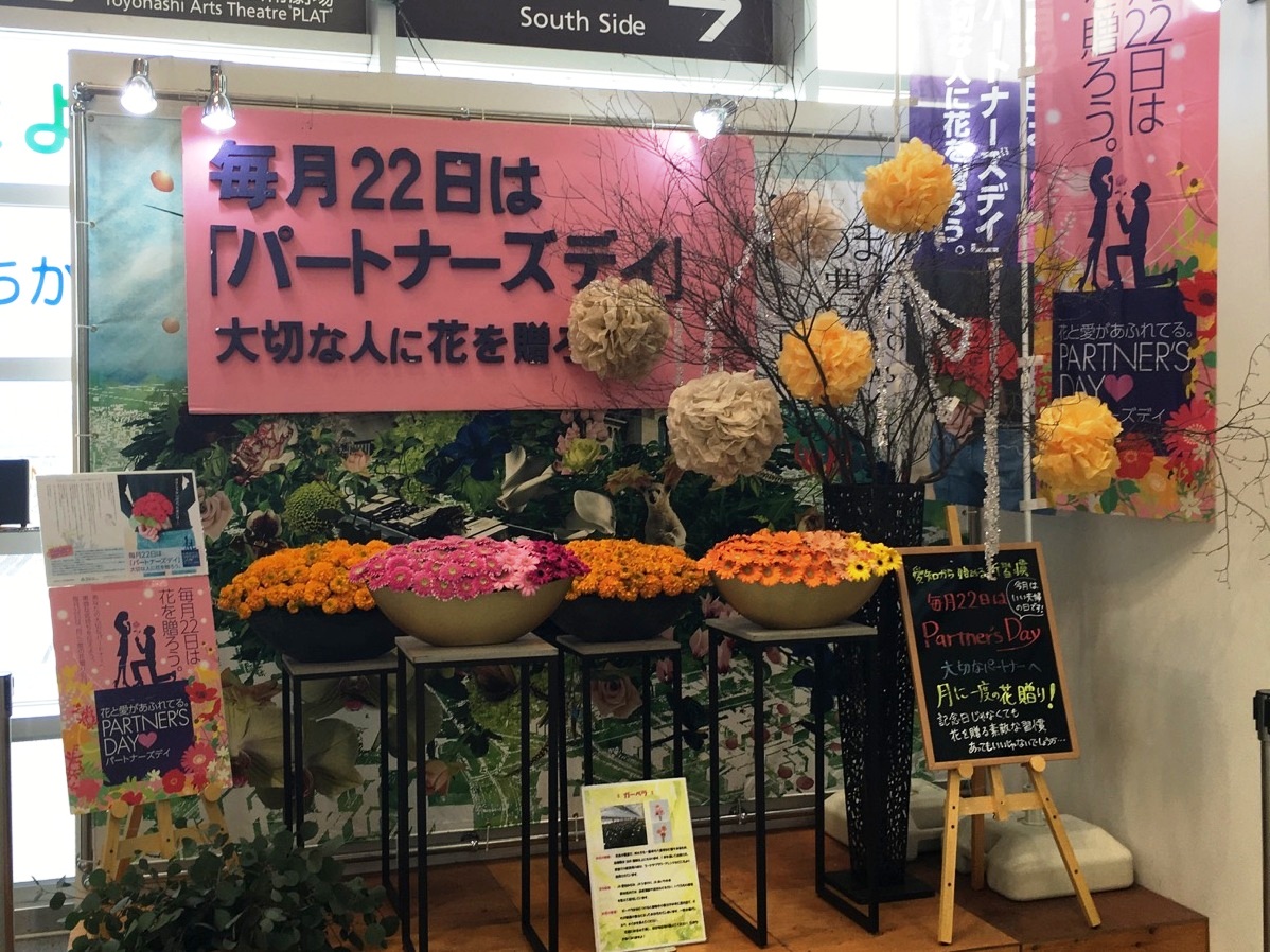 毎月、豊橋駅で地元花屋さん協力のもとパートナーズデイPRの展示を実施しています。
