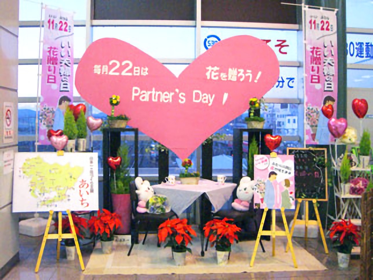 例えば、毎月22日は大切な人に花を贈る「パートナーズデイ」と定め、PRのための花束の配付などのイベントを実施。もっと気軽に花を楽しむきっかけづくりを、これからも続けていきます。