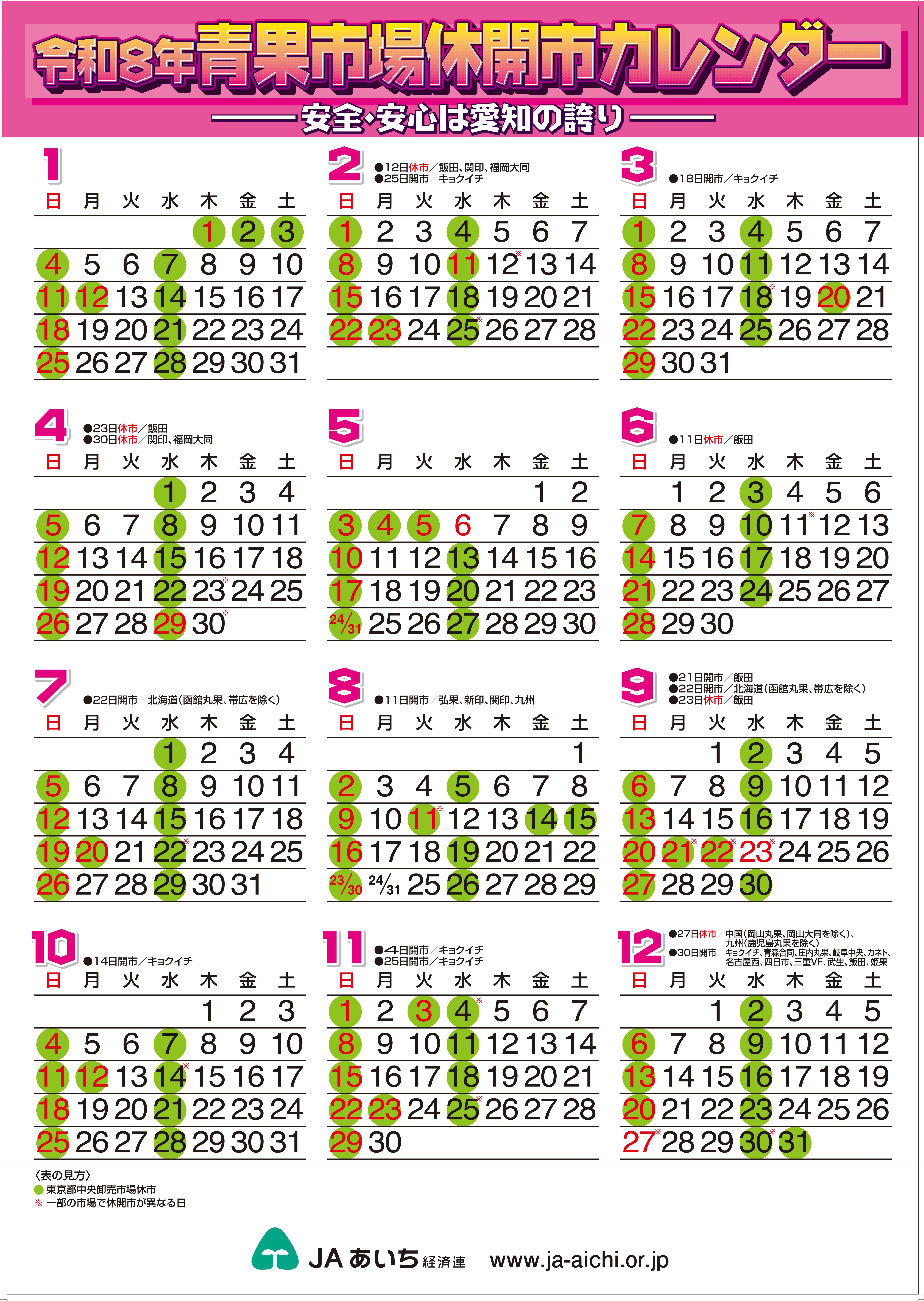 主要3市場における愛知県産青果物の市況概況をお知らせします。 更新は市場の開催日です。